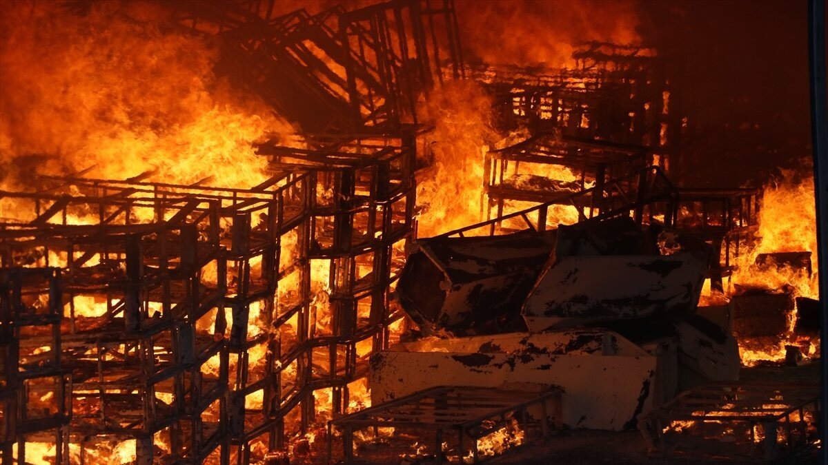 Kısa sürede büyüyen depodaki yangın nedeniyle zaman zaman patlama seslerinin duyulduğu belirtildi.