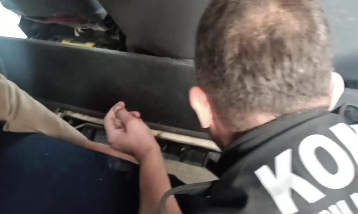 Aracı durduran ekipler, taban kısmında gümrük kaçağı cep telefonları olduğunu belirledi.