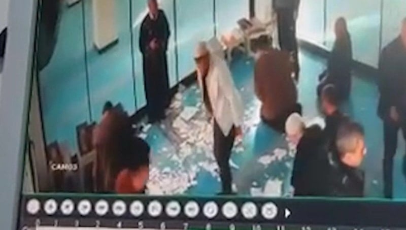 Güvenlik kamerasına yansıyan görüntülerde, cemaatin secde halinde olduğu esnada tavandan kopan parçaların aniden düştüğü, imam ve cemaatin panikle ayağa kalkarak camiyi terk ettiği görüldü.