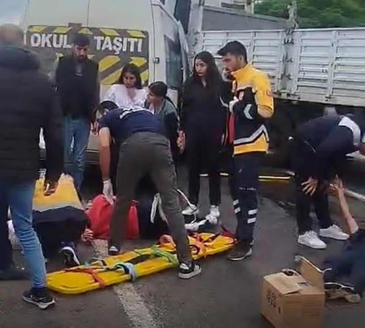Kazada servis sürücüsü ve araçtaki 8 öğrenci yaralandı.