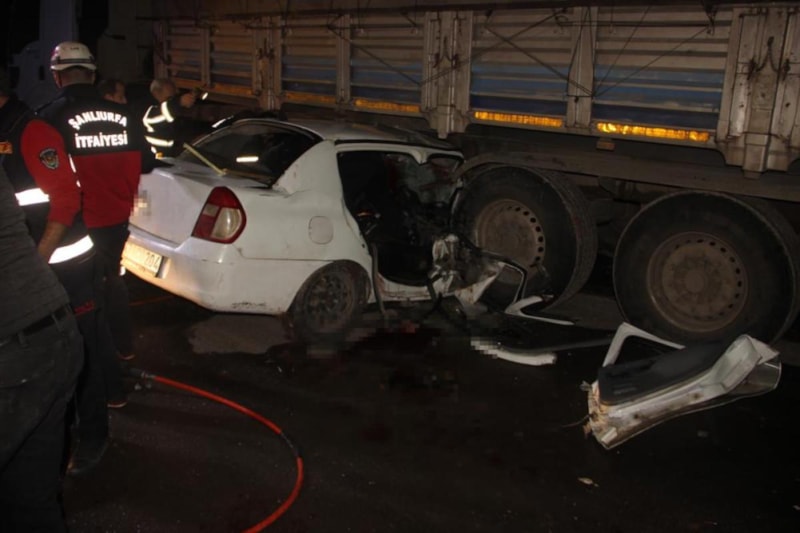Akşam saatlerinde Şanlıurfa-Mardin karayolunun Çamlıdere kırsal mahallesi yakınlarında, Şanlıurfa'dan Viranşehir istikametine ilerleyen Mehmet Sümer idaresindeki 47 ACU 204 plakalı otomobil, kavşaktan dönüş almaya çalışan Yusuf Ç.'nin kontrolündeki 47 AAH 185 plakalı tırın altına girdi.