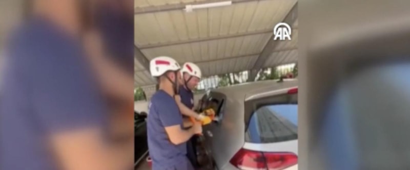 O sırada otomobilin kapıları kilitlendi ve bebeği araçtan çıkartmak mümkün olmadı..