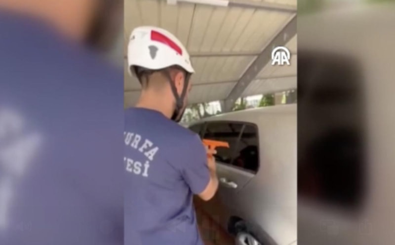 Şanlıurfa'nın Karaköprü ilçesinde otomobilde kilitli kalan bebek, itfaiye ekibince çıkarıldı.