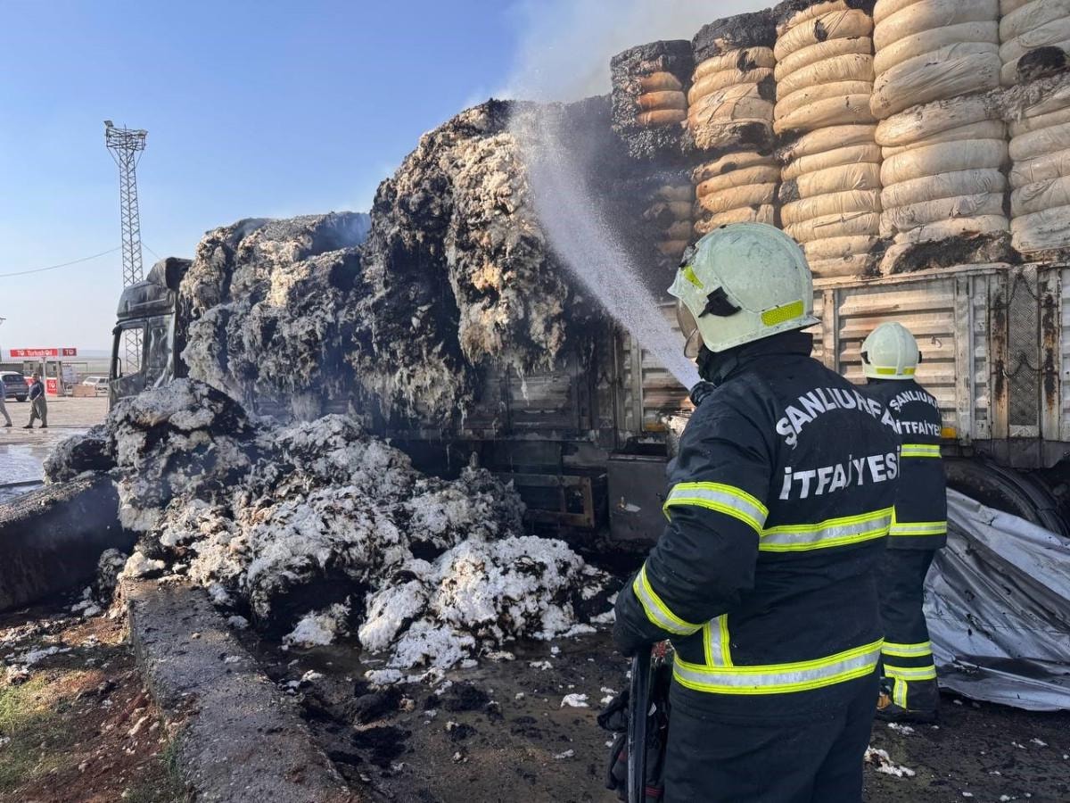 Şanlıurfa’nın Suruç ilçesi Şanlıurfa-Suruç kara yolunun 25'inci kilometresinde meydana gelen olayda, İsmail B. idaresindeki pamuk yüklü tır, seyir halinde alev almaya başladı.