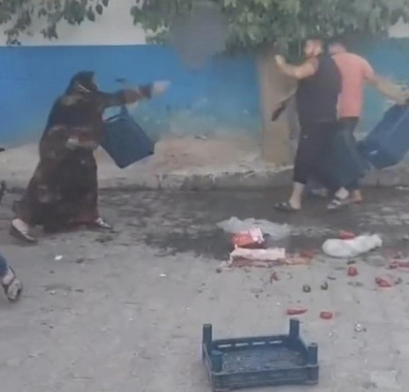 Bazı kişiler sebze ve meyve kasalarını birbirlerine fırlattı. İhbar üzerine bölgeye polis ve zabıta ekipleri sevk edildi.