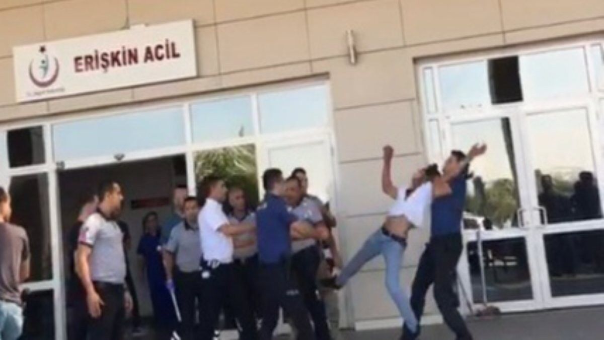 Görevlilere saldırmaya devam eden şahıslardan birine hastane güvenlik görevlileri de süpürge sapı ve yumruklarla karşılık verdi.Şahıslardan biri, hastane personeli tarafından bölgeden uzaklaştırılmaya çalışılırken diğer şahıs ise güvenlik görevlisine saldırmaya devam etti.