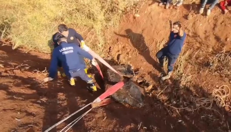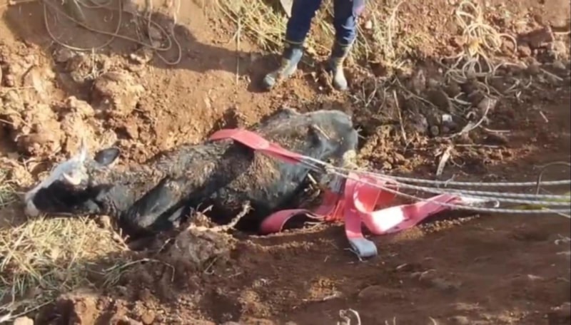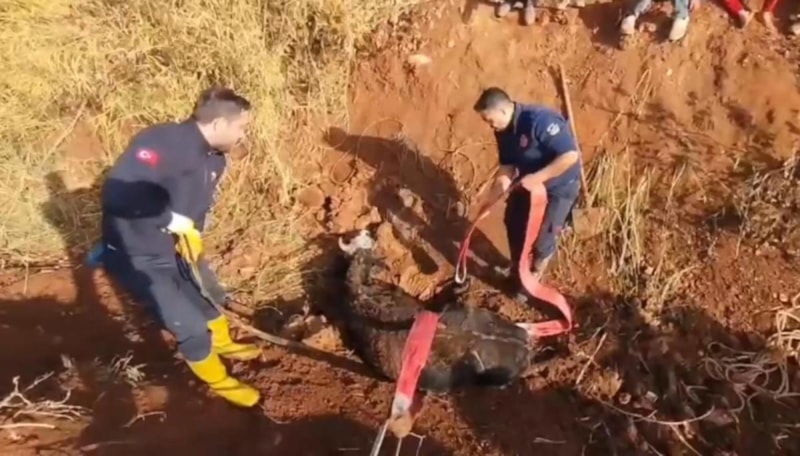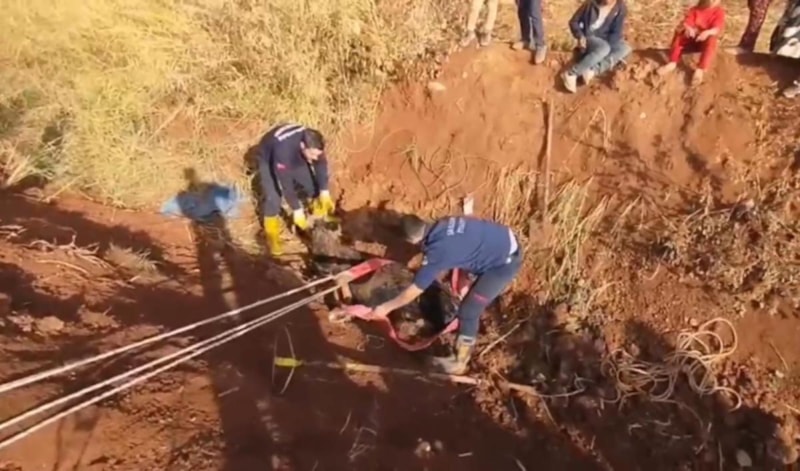Şanlıurfa’nın Eyyübiye ilçesine bağlı Uğurlu Mahallesi’nde bir kişi, otlatmak için kırsal alana götürdüğü ineğinin tahliye kanalına düşerek bataklığa saplandığını fark etti. Kendi çabalarıyla hayvanı çıkaramayan sahibi yardım istedi.
