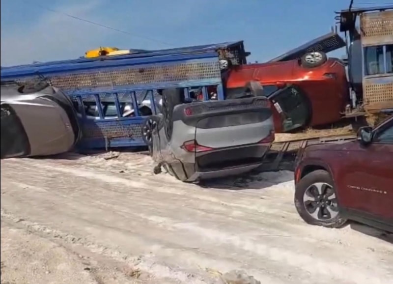 Viranşehir ilçesinde sıfır otomobiller yüklü tır devrildi, araçlar büyük hasar aldı.