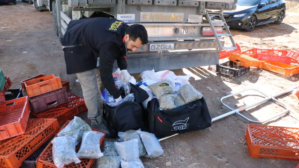 Tırın dorsesinde boş meyve kasaları arasına gizlenmiş 26 kilo uyuşturucu buldu. Ele geçirilen maddenin piyasa değerinin 600 bin lira olduğu belirtildi.
