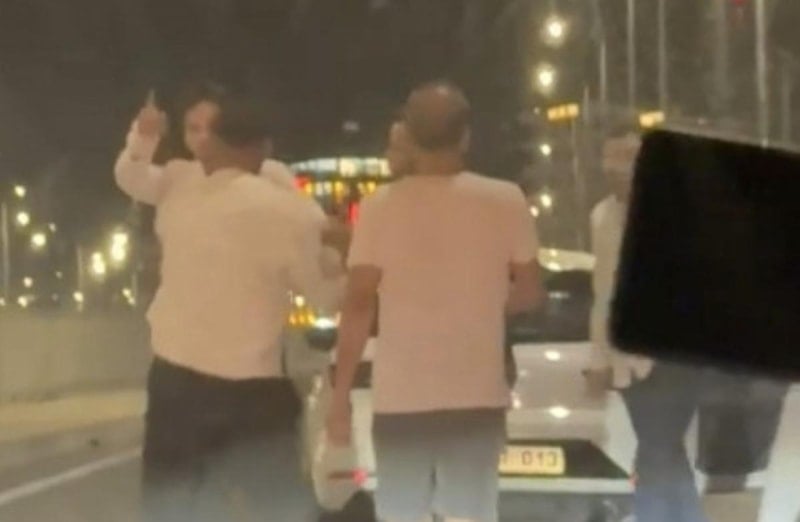 Kalabalık bir grubun yer aldığı otomobilin sürücüsü, tartıştığı sürücünün önünü kesti.