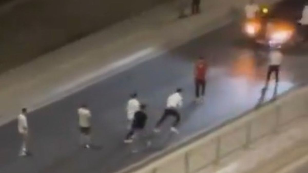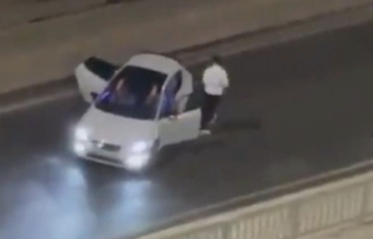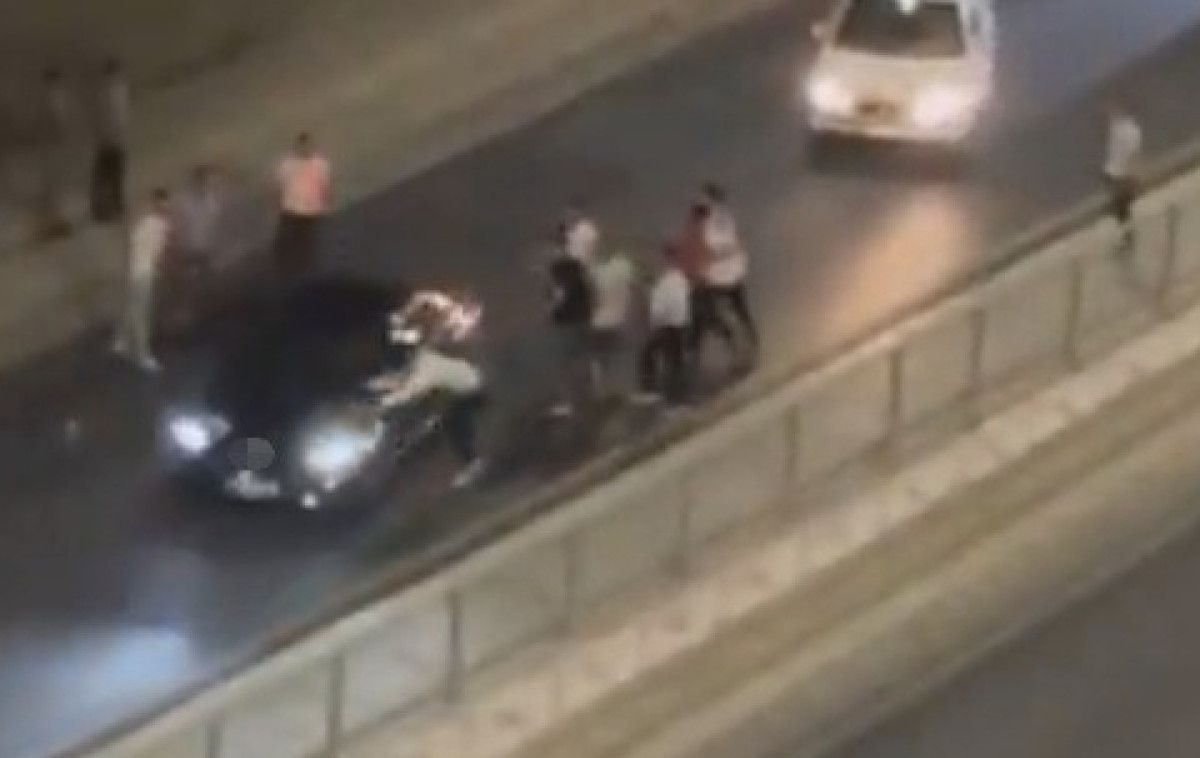 Görüntülerde, aracın önü 2 kez kesilerek, alkollü olduğu iddia edilen kişilerce saldırı gerçekleştiriliyor.