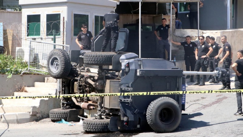 Karşıyaka Mahallesi'ndeki İl Emniyet Müdürlüğü Çevik Kuvvet Şube Müdürlüğü yerleşkesinden çıkış yapan 31 yaşındaki polis memuru Ramazan Kütük'ün kullandığı zırhlı araç, kaldırıma çarparak devrildi.
