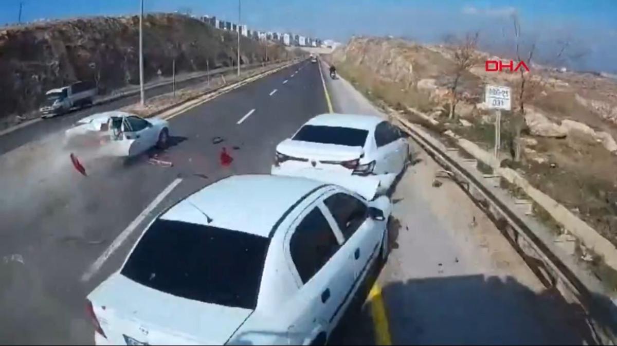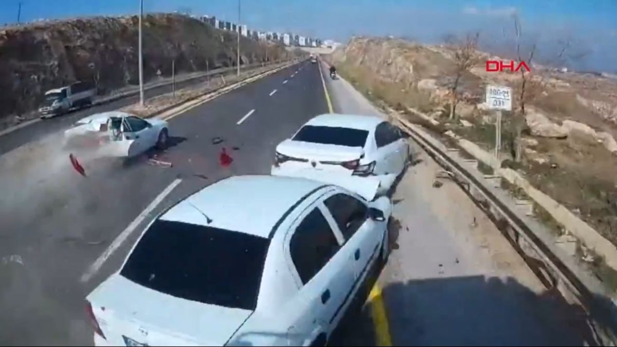 Çarpmanın ardından arkadan gelen iki otomobilin de kazaya karıştığı ve savruldukları görülüyor. Kazayla ilgili soruşturma başlatıldı.
