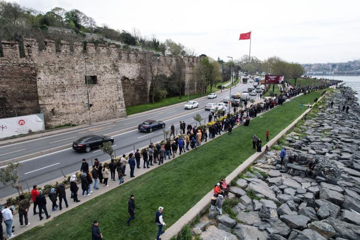 Türkiye'nin ve dünyanın ilk SİHA gemisini görmek için gelenler Sarayburnu Sahili'nde metrelerce uzunlukta kuyruk oluşturdu.