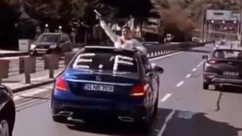 O görüntülerin ardından Trafik Denetleme Şube Müdürlüğü ekipleri, maganda gelinin tespit edilmesi için çalışma başlattı.