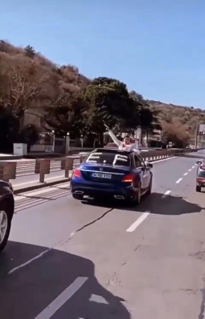 Düğün konvoyunda aracın açılır tavanından çıkan gelin, silahla havaya ateş etti. O anlar cep telefonu kamerasıyla görüntülenirken, maganda gelin kısa sürede yakalandı. Gelin hakkında adli işlem başlatıldı.