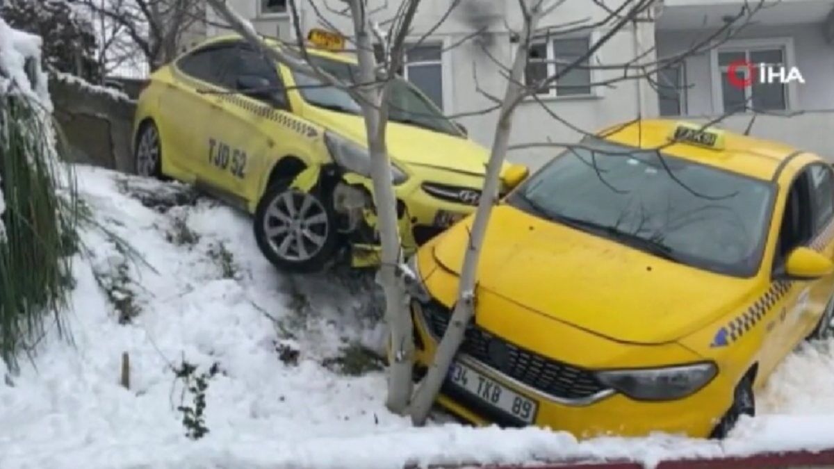 İstanbul'un Sarıyer ilçesine bağlı Rüzgargülü Sokak'ta Umut Gökçek'in kullandığı 34 TKB 89 plakalı taksi, buz tutan yokuşta kayarak bir ağaca çarptı.