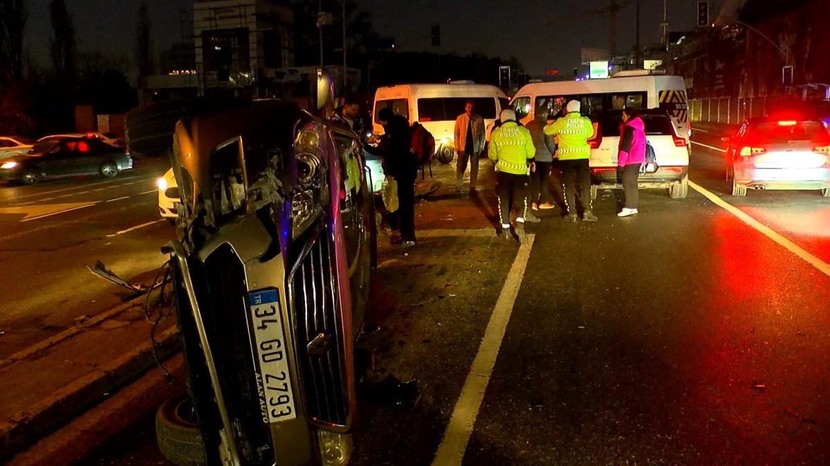 Çarpmanın etkisiyle direksiyon hakimiyetini kaybeden sürücü, önce karşı şeritten gelen otomobile daha sonra da trafik ışıklarına çarparak takla attı.