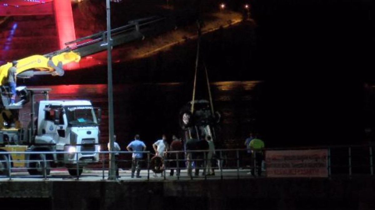Olay yerine gelen vinç ve dalgıçlarla otomobil halatlara bağlanarak denizden çekilerek çıkarıldı.