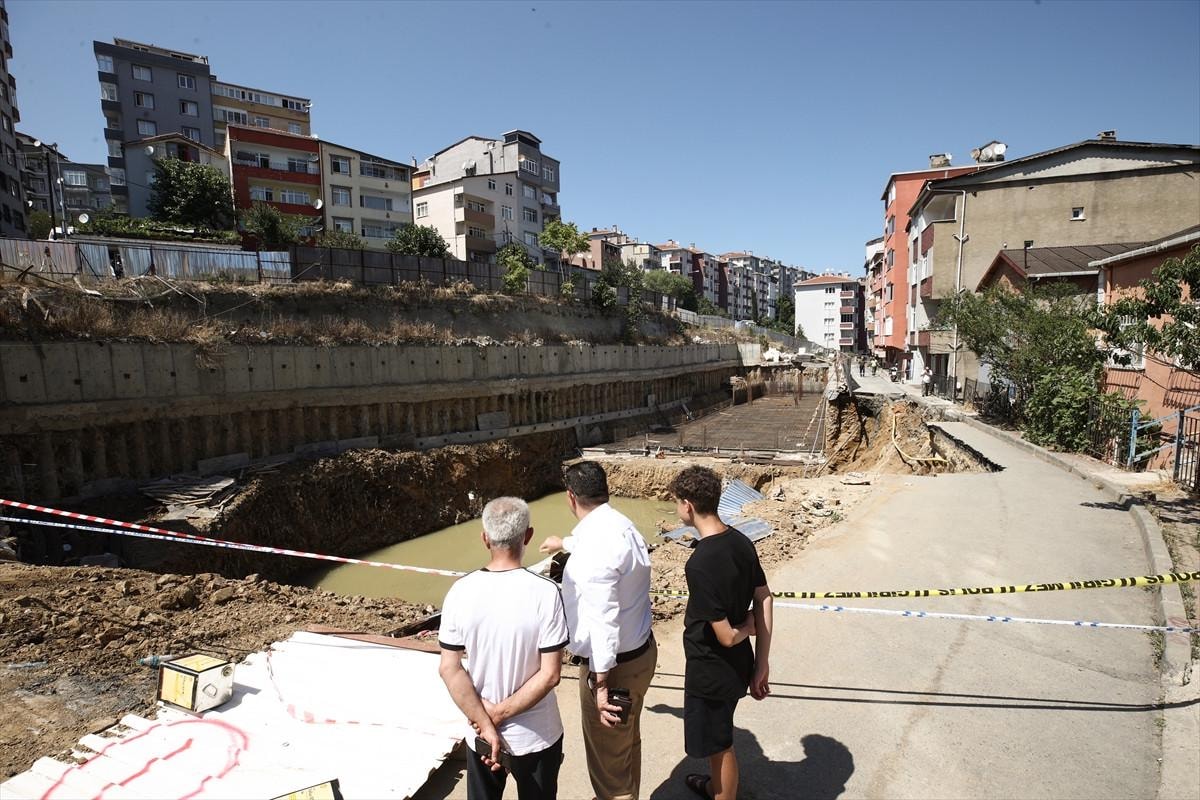 Öte yandan inşaat alanı ve yoldaki çökme anı vatandaşlar tarafından cep telefonuyla kaydedildi.