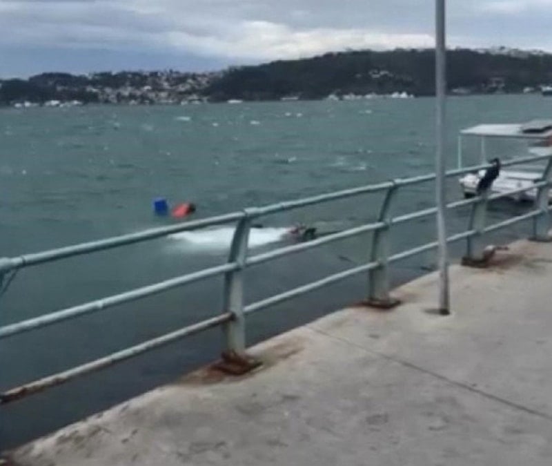 İstanbul’da saatte 85 kilometreye ulaşan şiddetli lodos, deniz ulaşımını olumsuz etkilerken Sarıyer Büyükdere sahilinde bir balıkçı teknesinin batmasına neden oldu.
