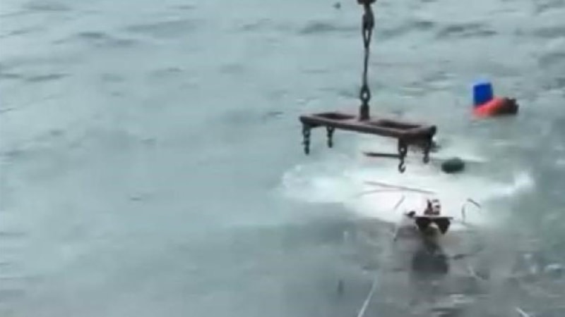 VİNÇLE DENİZDEN ÇIKARILDI