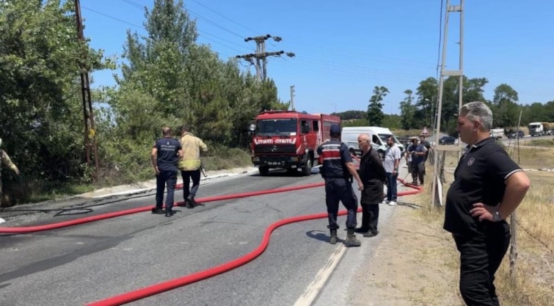 Çevredekilerin ihbarıyla bölgeye itfaiye, jandarma ve sağlık ekipleri sevk edildi. Güvenlik önlemleri alan jandarma, yolu geçici olarak trafiğe kapattı. İtfaiye ekipleri, alev topuna dönen aracı söndürerek soğutma çalışması yaptı.