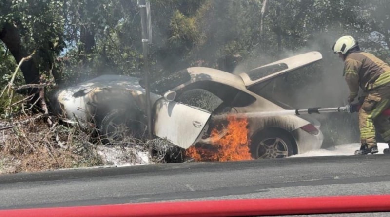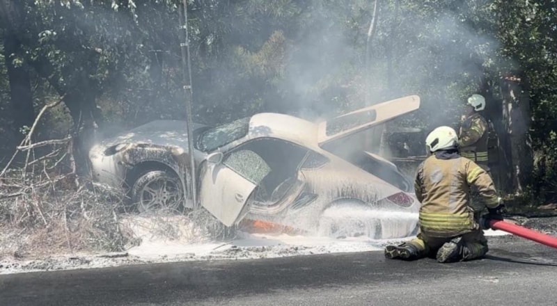 Kaza sonrası araçtan kendi çabasıyla çıkan sürücü, kazayı yara almadan atlattı. Ancak birkaç dakika içinde otomobilde yangın çıktı ve alevler kısa sürede çevredeki yeşil alana sıçradı.