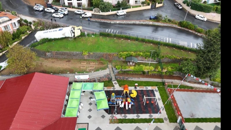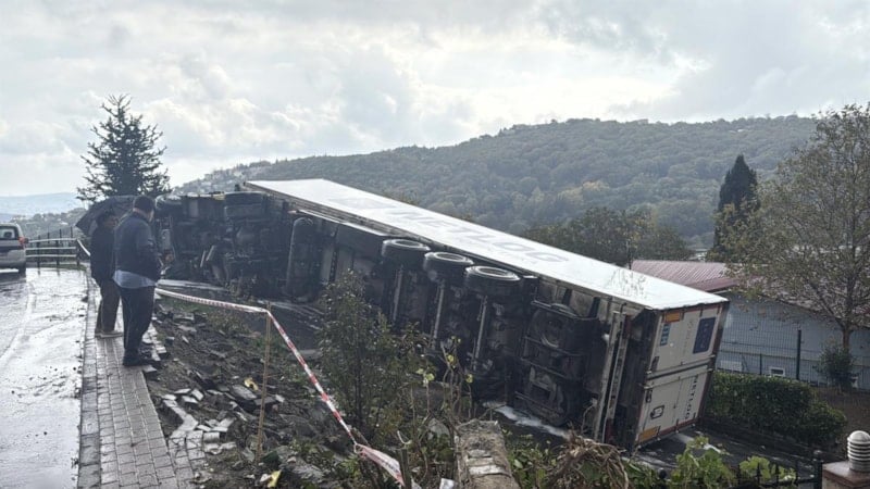 Sarıyer’e bağlı Maden Mahallesi’nde saat 13.00 sıralarında yaşanan kazada cadde üzerinde ilerleyen tır, sürücüsünün hakimiyetini kaybetmesinin ardından kontrolden çıkarak alt kısımda çocuk parkının bulunduğu yola devrildi.