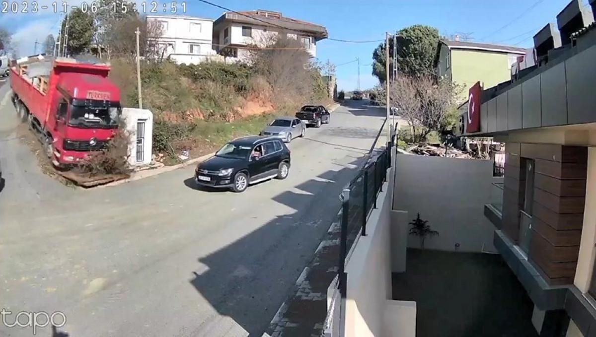 Cadde üzerindeki öğrenci servisinin şoförü, tırın şoförü olmadan ilerlediğini fark ederek servis aracını geri geri götürerek olası bir faciayı engelledi.