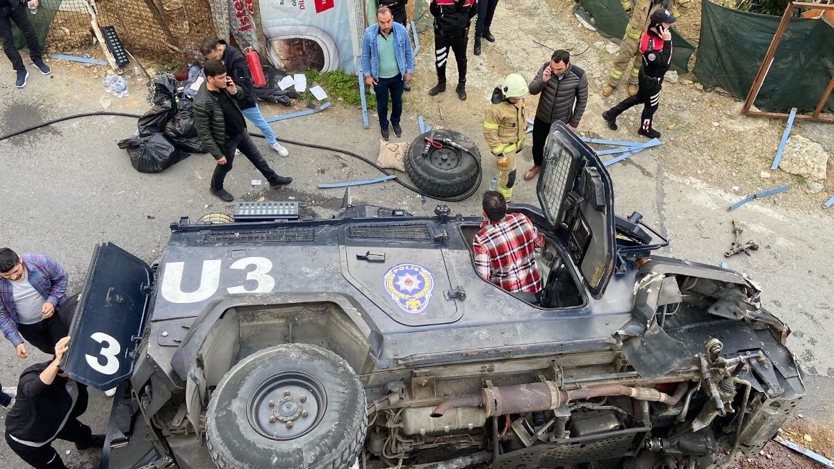 Öte yandan olayı anlatan Baran Demirbaş, “Polis aracımız aşağıdan yukarıya doğru hızlı geliyormuş. Direksiyon hakimiyetini kaybediyor, ilk başta kaldırıma çarpıyor tekeri, sonra zırhlı araç aşağıya düşüyor. Polislerin durumları iyi Allah’a şükür bir sıkıntıları yok” ifadelerini kullandı.