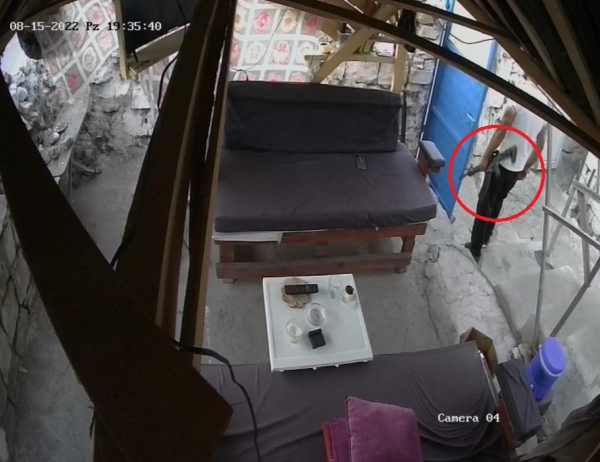 Mustafa Işık'ın, tüfeği sokağın diğer tarafına çevirip, kendisine müdahale etmek isteyen başka komşusuna doğrultarak ateş ettiği, ardından evin avlusuna girdiği, 2 farklı tüfeği kanepenin altında sakladığı, daha sonra da 2 tüfeği alarak hızla evinin merdivenlerinin çıktığı anlar kaydedildi.