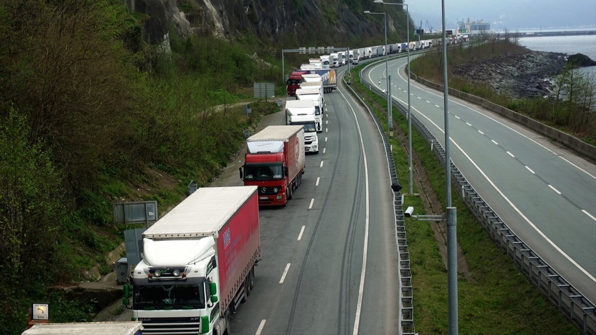 Gürcistan sınırından itibaren kilometrelerce tır kuyruğu oluştu.