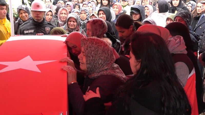 Törende, şehidin 7 yaşındaki oğlu İdris Bartu, eşi Hatice Ünal ve annesi Zeynep Ünal tabuta sarılarak gözyaşı döktü.