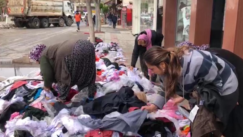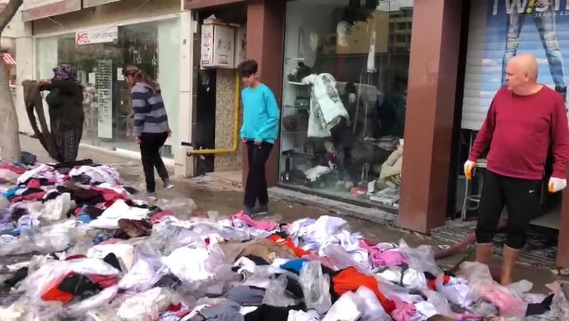 Bodrum kat komple ürünle doluydu. Yazlık ve kışlıklar, okul kıyafetleri vardı. Canımız sağ olsun. Yapacak bir şeyimiz yok, canımıza bir şey olmasın. Bunları yıkamadan kullanmasınlar. Çünkü deniz suyu ve rögarlardan gelen suyun karışmasıyla bir koku var. Yıkanıp iyice dezenfekte yapılarak giyilebilir. Sokağa, çöpe atılacak bir mal değil.