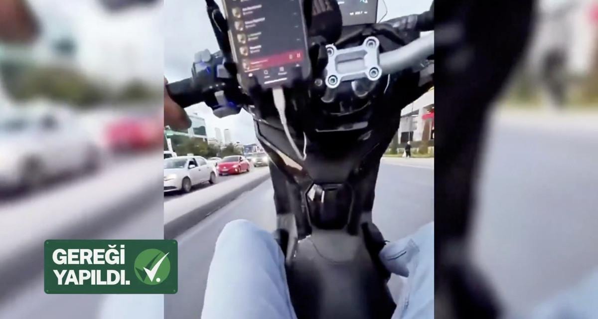 Seyir halinde hem kendi hem diğer sürücülerin canını hiçe sayan motosikletlinin akıbetini, İçişleri Bakanı Ali Yerlikaya, sosyal medya platformu X hesabı üzerinden aktardı.