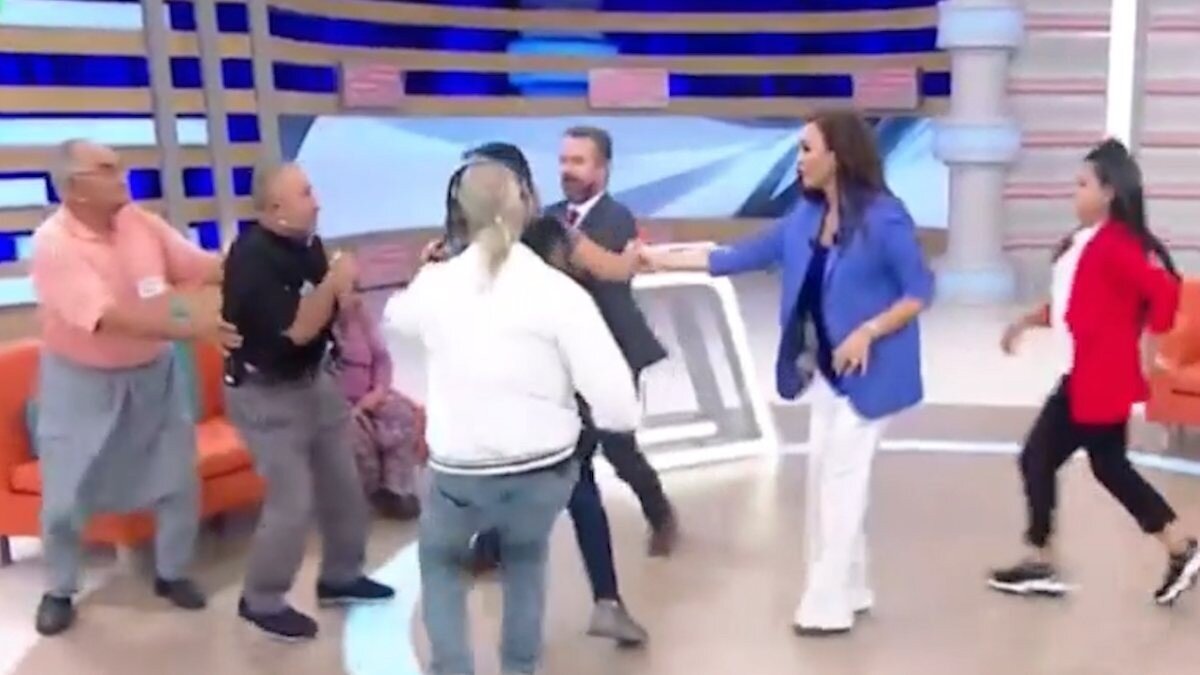 Katıldıkları televizyon programında aldatma üzerine tartışan İsa ve Kadriye çifti, canlı yayında birbirinin üzerine yürüdü.