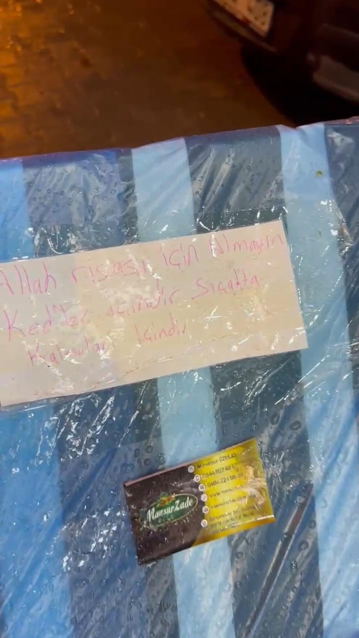 Esnaf, kedi evini sokaktaki kediler için yaptırmış ve kaldırımın kenarına koymuştu.