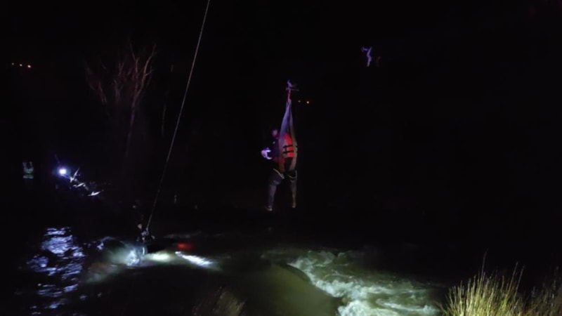Siirt'te dereye uçan otomobilinin üstüne çıkarak boğulmaktan kurtulan sürücü, AFAD ekipleri tarafından vinç yardımıyla kurtarıldı.