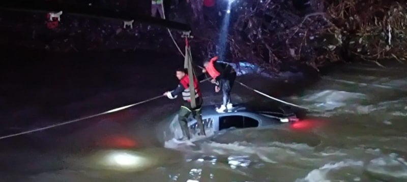 Boğulmamak için otomobilin üstüne çıkan sürücü, AFAD ekipleri tarafından vinç yardımıyla filmleri aratmayacak çalışmayla kurtarılarak sağlık ekiplerine teslim edildi.