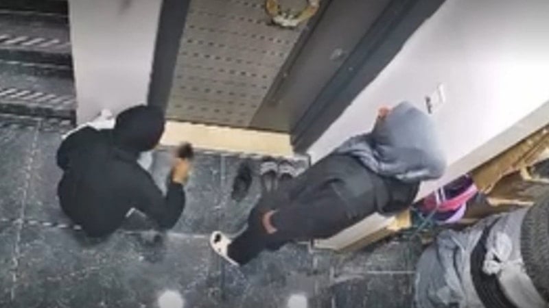 Görüntülerde sitedeki binaya giren ve daire kapısına gelen kadınlardan birinin kapı önündeki ayakkabıyı kokladığı, kapıyı kartla açmaya çalıştıkları ve evden ses gelmesi üzerine binadan uzaklaştıkları yer alıyor.