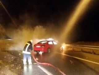 Siirt'te kontrolden çıkarak bariyerlere çarpan araçtan alevler yükseldi.