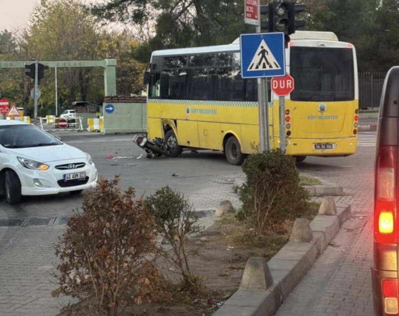 Siirt 15 Temmuz Demokrasi Meydanı’nda, sürücüsünün ismi öğrenilmeyen Siirt Belediyesi’ne ait şehir içi yolcu taşımacılığı yapan otobüs ile Dursun T. yönetimindeki motosiklet çarpıştı.