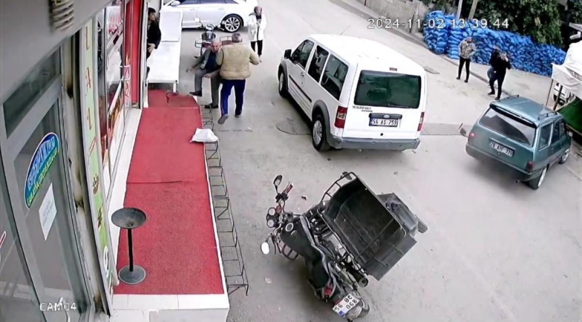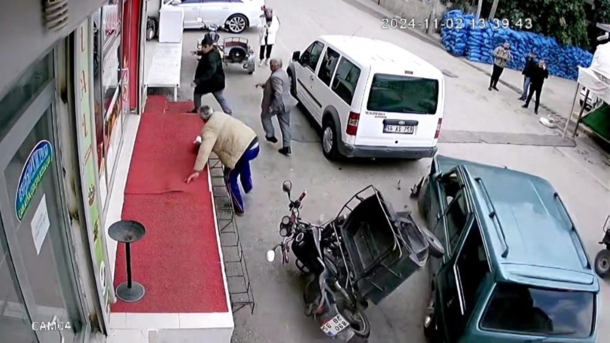 Kazada ölen ya da yaralanan olmazken, bir iş yeri önünde oturanların panik anları güvenlik kameralarına yansıdı.