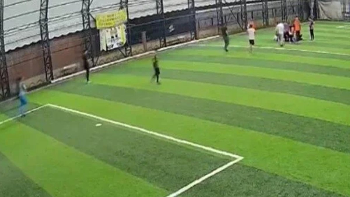 Olay, halı sahanın güvenlik kamerasınca kaydedildi.
