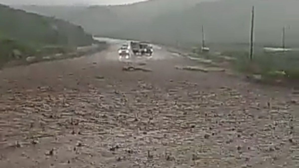 Yağışlarla birlikte kara yolu ulaşıma kapandı.