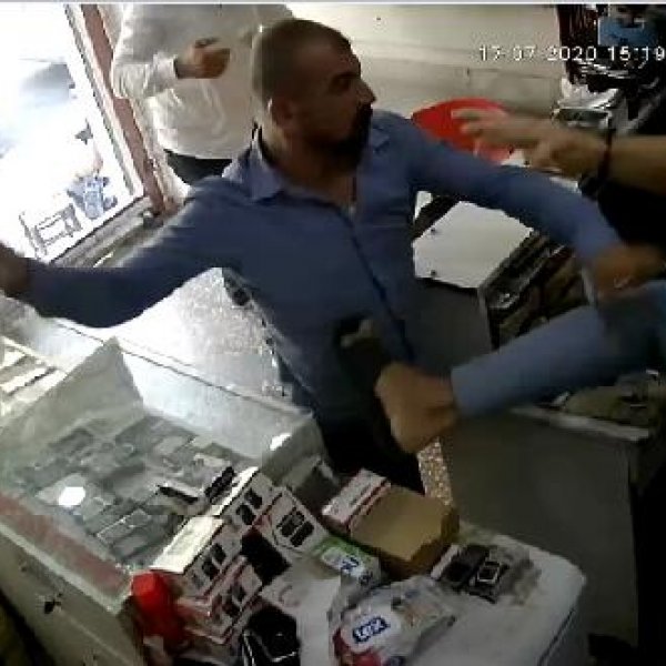 Esnafın müdahalesiyle saldırganlar dışarı çıkarıldı. Bu sırada saldırganlardan biri sopayla bu kez iş yerindeki cam rafları kırdı. Şüpheliler kaçarken, saldırı anı ise güvenlik kamerasına yansıdı.