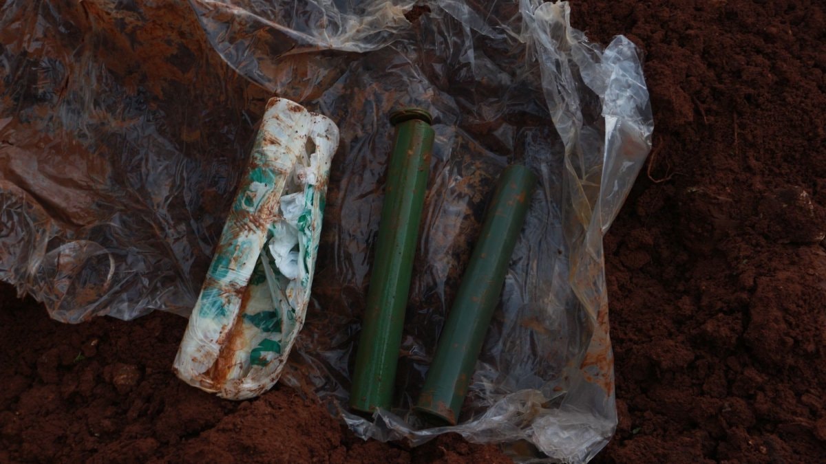 Toprağa gömülü roketatar sevk fişekleri bulundu