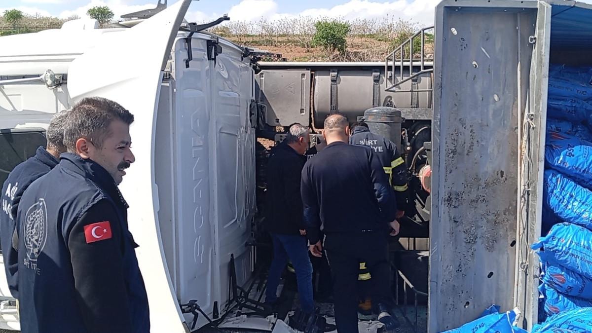 Bunun üzerine Alaaddin M. idaresindeki kömür yüklü tır, sürücünün direksiyon hakimiyetini kaybetmesi sonucu virajda devrildi.