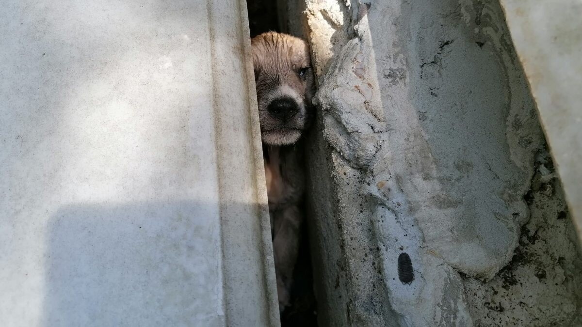 İstanbul’un Silivri ilçesine bağlı Ali Bey Mahallesi'nde bulunan mezarlıkta, iki yavru köpek mezarlıkların arasına sıkıştı.
